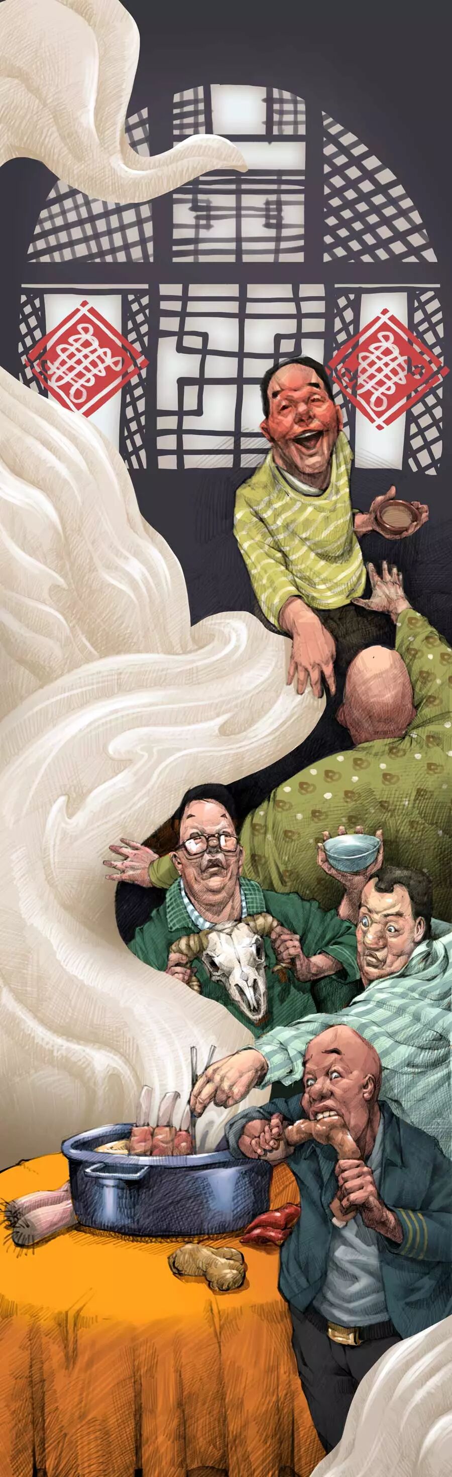 炖羊肉好吃,但也价值不菲。羊肉价格高,一是需求量大,市场因素决定的;二来羊肉是肉类里生熟损耗最大的,古人李渔《闲情偶寄》里道:物之折耗最重者,羊肉是也。谚之有曰:“羊几贯,账难算,生折对半熟对半,百斤只剩念余斤,缩到后来只一段。”大率羊肉百斤,宰而割之,止得五十斤。迨烹而熟之,又止得二十五斤。为了解决对羊肉的美好向往和囊中羞涩的矛盾,豪放聪慧的陕北人有一个“打平伙”的吃肉办法,大家凑钱买羊,炖熟了分着吃,煞是热闹有趣。
